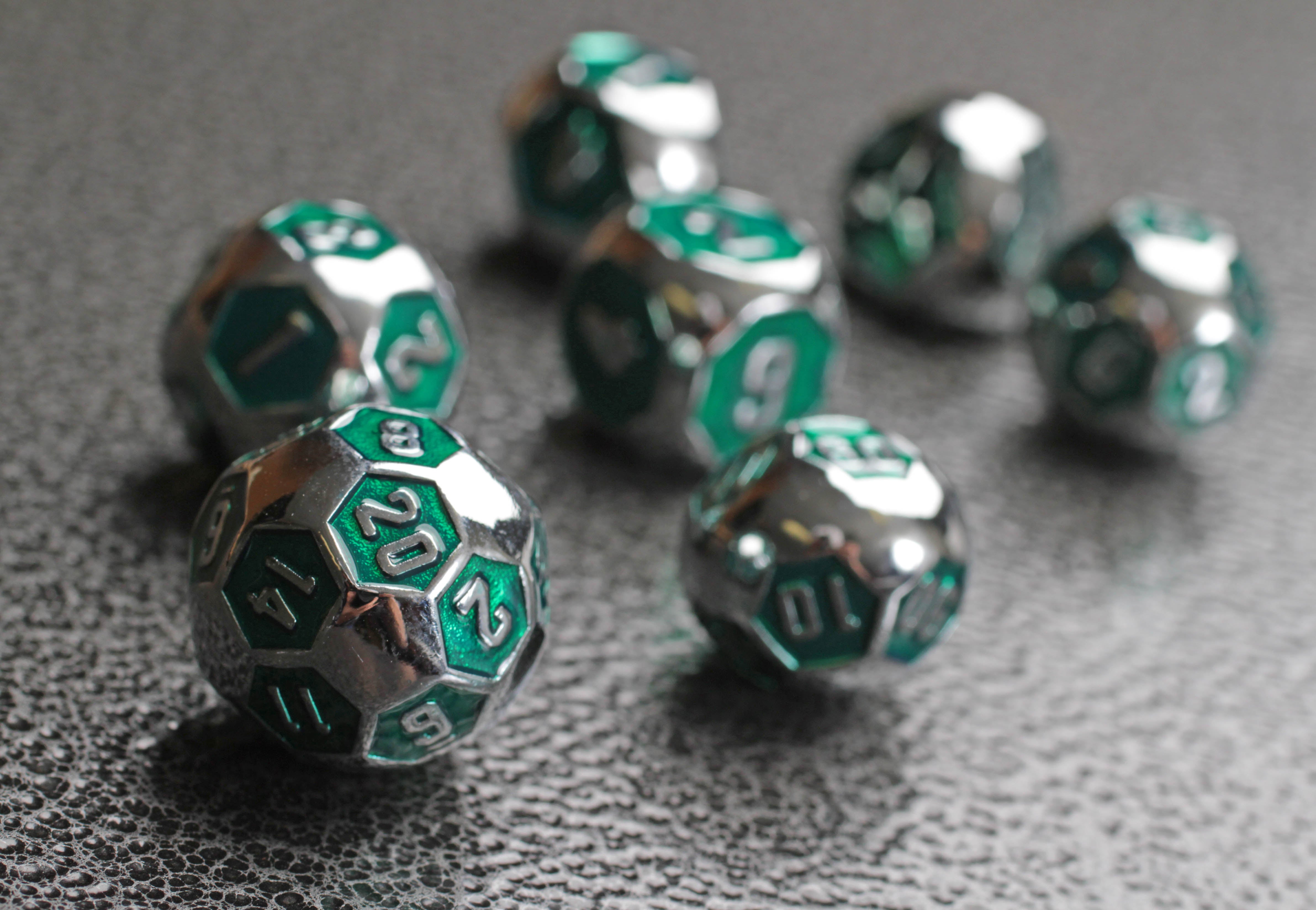 Our heavy duty polyhedral dice are made of SOLID metal, yes, they are literally, Heavy. Metal. dice.